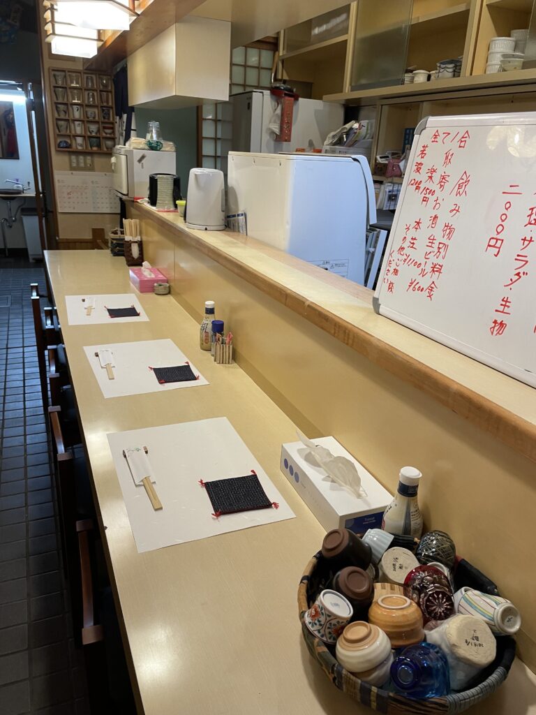 小さなお店ですので手前4席を酔いの宵のお席にさせていただいています。 タイミングでその他のお席にご案内出来る時もあります。