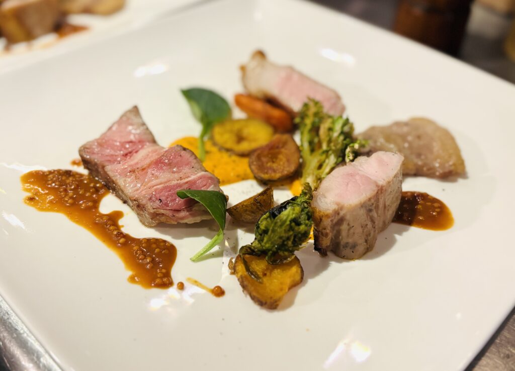 豚を一頭買いし、部位ごとに最適な火入れと仕立てでご提供。名物ローストポーク、パテなどのシャルキュトリ、希少ブランド豚の“食べ比べ”をご用意しております。 自然派ワインとともに気軽にお楽しみください。 少人数・記念日にもご対応しております。